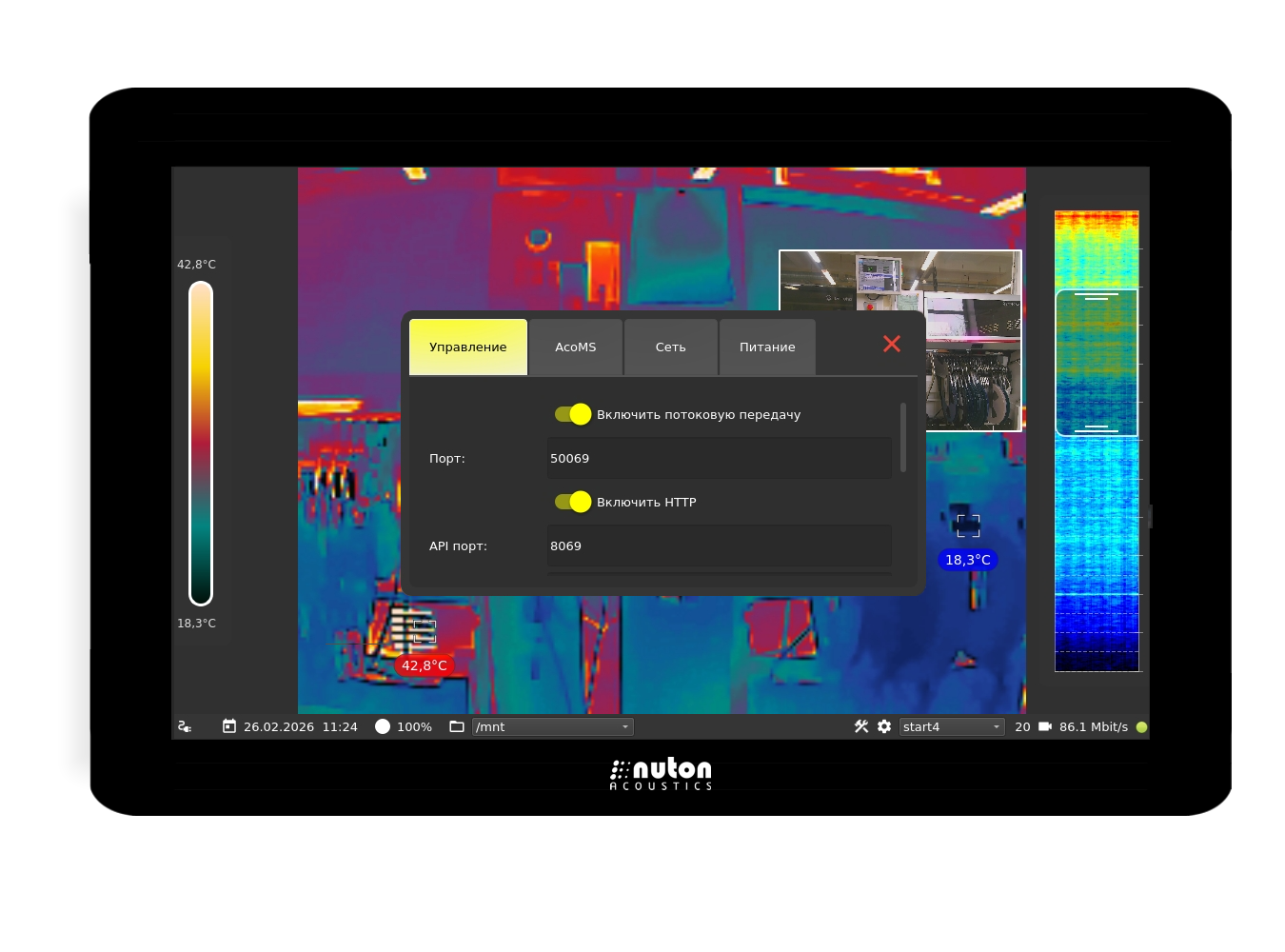 | Acoustic image frame rate | up to 30 FPS |